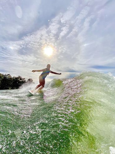 Sunset Surf Co. is a female veteran owned business in Austin, Texas, specializing in being your wake surf coach and boat captain all in one. As an experienced boat captain and wake surf enthusiast, I'd be stoked to get out on Lake Austin or Lake Travis with you and your crew! Take the stress out of boating and take your skill set on the wave to the next level. Book me for your next boat outing and I'll see you at the lake!